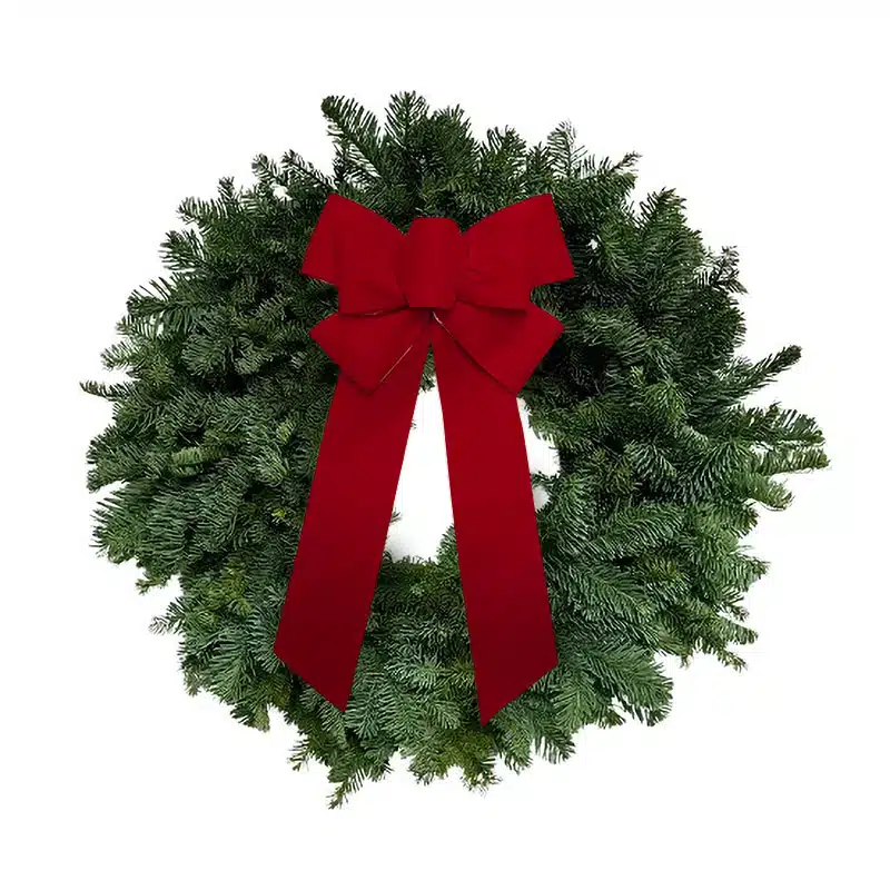 A fresh Noble Fir Classic Wreath just waiting for you to embellish it with decorations of your choice. Perfect for group projects or DYI home crafters.